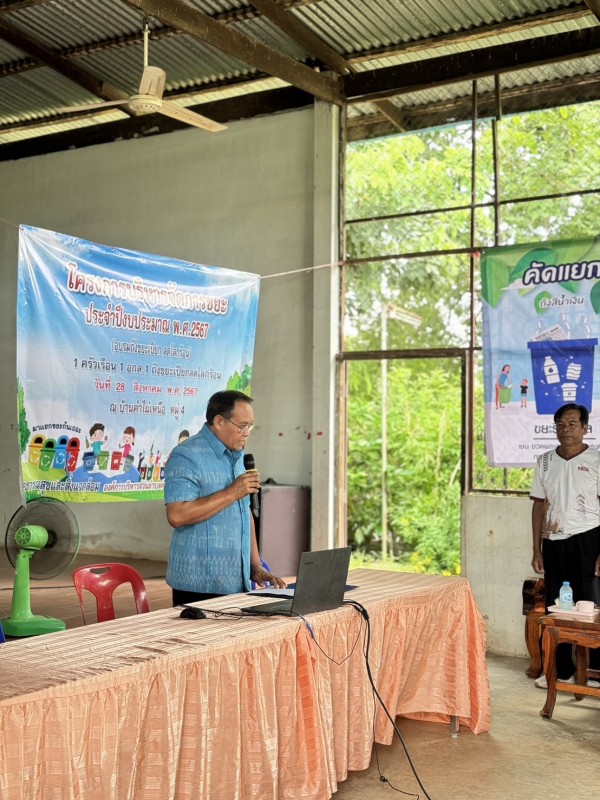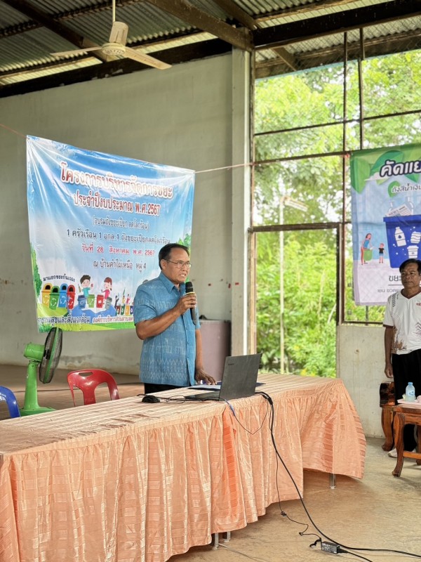 วันที่ 28 สิงหาคม 2567 กองสาธารณสุขและสิ่งแวดล้อม องค์การบริหารส่วนตำบลคำไผ่ ได้ดำเนินอบรมภายใต้โครงการบริหารจัดการขยะในหมู่บ้าน ณ บ้านคำไผ่เหนือ หมู่ 4 ตำบลคำไผ่ อำเภอไทยเจริญ จังหวัดยโสธร โดยมีประชาชนผู้เข้าร่วมโครงการจำนวน 100 ครัวเรือน ประกอบด้วย สมาชิก อถล. อสม. และประชาชนทั่วไป