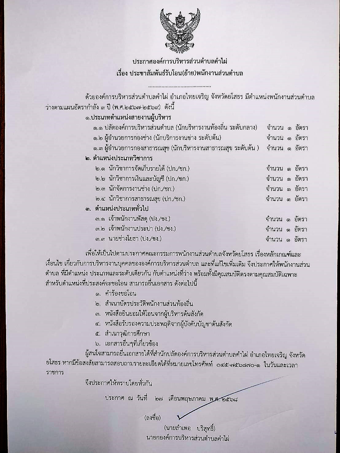 ประชาสัมพันธ์รับโอน(ย้าย)พนักงานส่วนตำบล