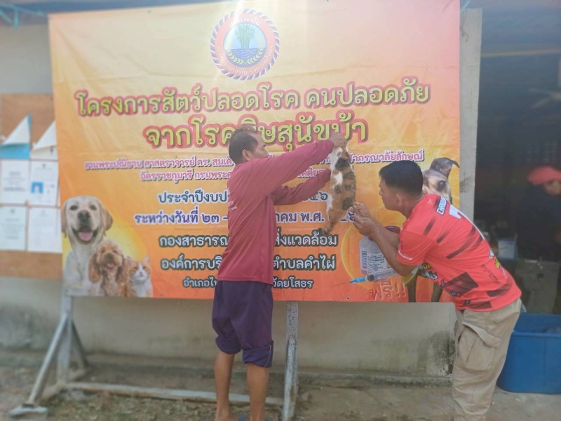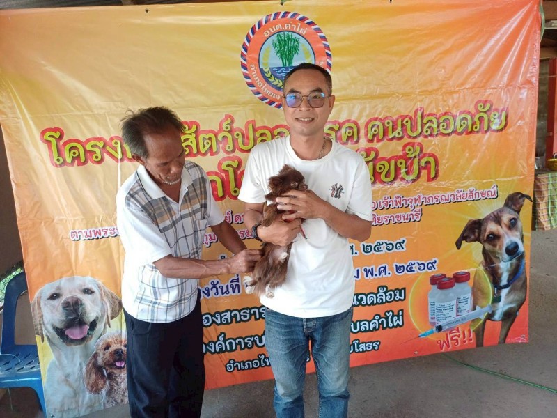 กองสาธารณสุขและสิ่งแวดล้อม องค์การบริหารส่วนตำบลคำไผ่ ออกให้บริการฉีดวัคซีนป้องกันโรคพิษสุนัขบ้าฯ ตามโครงการสัตว์ปลอดโรค คนปลอดภัยจากโรคพิษสุนัขบ้าฯ จำนวน 9 หมู่บ้าน ในวันที่ 23-27 มีนาคม 2569